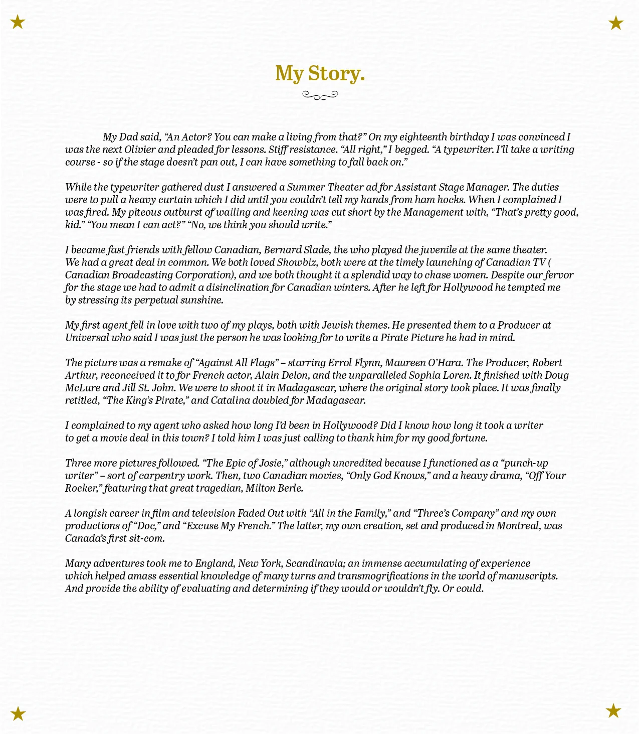 THIS IS AN AREA WE CAN WRITE A LONGER BIO IF WE THINK IT'S NECESSARY OR JUST DELETE THE BIO SECTION IN THE MENU ABOVE.